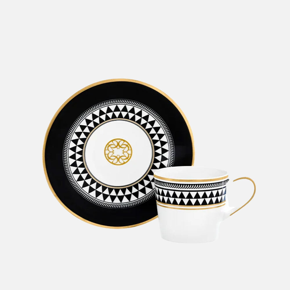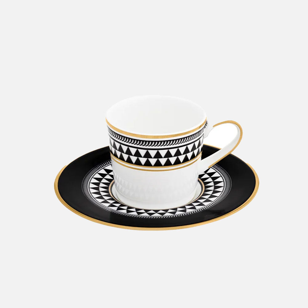 استمتع بقهوتك الإسبريسو بأناقة مع طقم فناجين وصحون الإسبريسو "موزاييك دو بعلبك" من إيلي صعب . مصنوع من الخزف العظمي الفاخر، يتميز هذا الكوب بسعة 9 سل وصحن بقطر 13 سم بتصميم مستوحى من الفسيفساء باللونين الأبيض والأسود مع حافة ذهبية وشعار، ليجمع بين الأناقة الخالدة والحرفية الفاخرة.