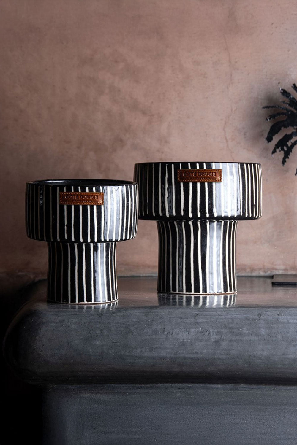 Zebra Bowl Scented Candle — a bold, refined design piece handcrafted in Marrakech. Each ceramic bowl is hand-thrown, glazed, and hand-painted with striking black-and-white zebra stripes, pairing a graphic motif with the delicacy of Moroccan craftsmanship. The refined fragrance, composed in Grasse, elevates any interior with a modern, luxurious ambiance.