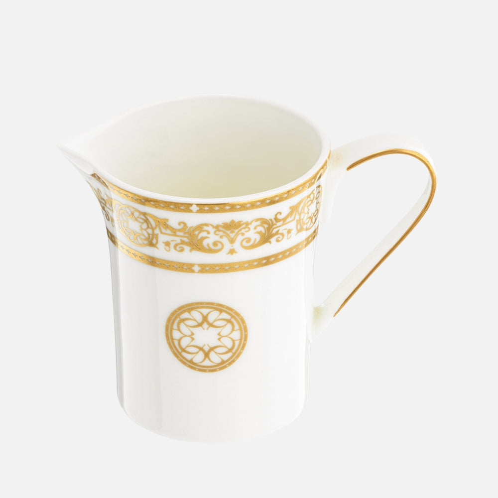 Elevate your table with this luxurious fine bone china creamer, adorned with a rich, full Baroque gold motif over a delicate white base. Part of the limited Elie Saab Collection and presented in a gift box, it adds opulent sophistication to tea or coffee service.