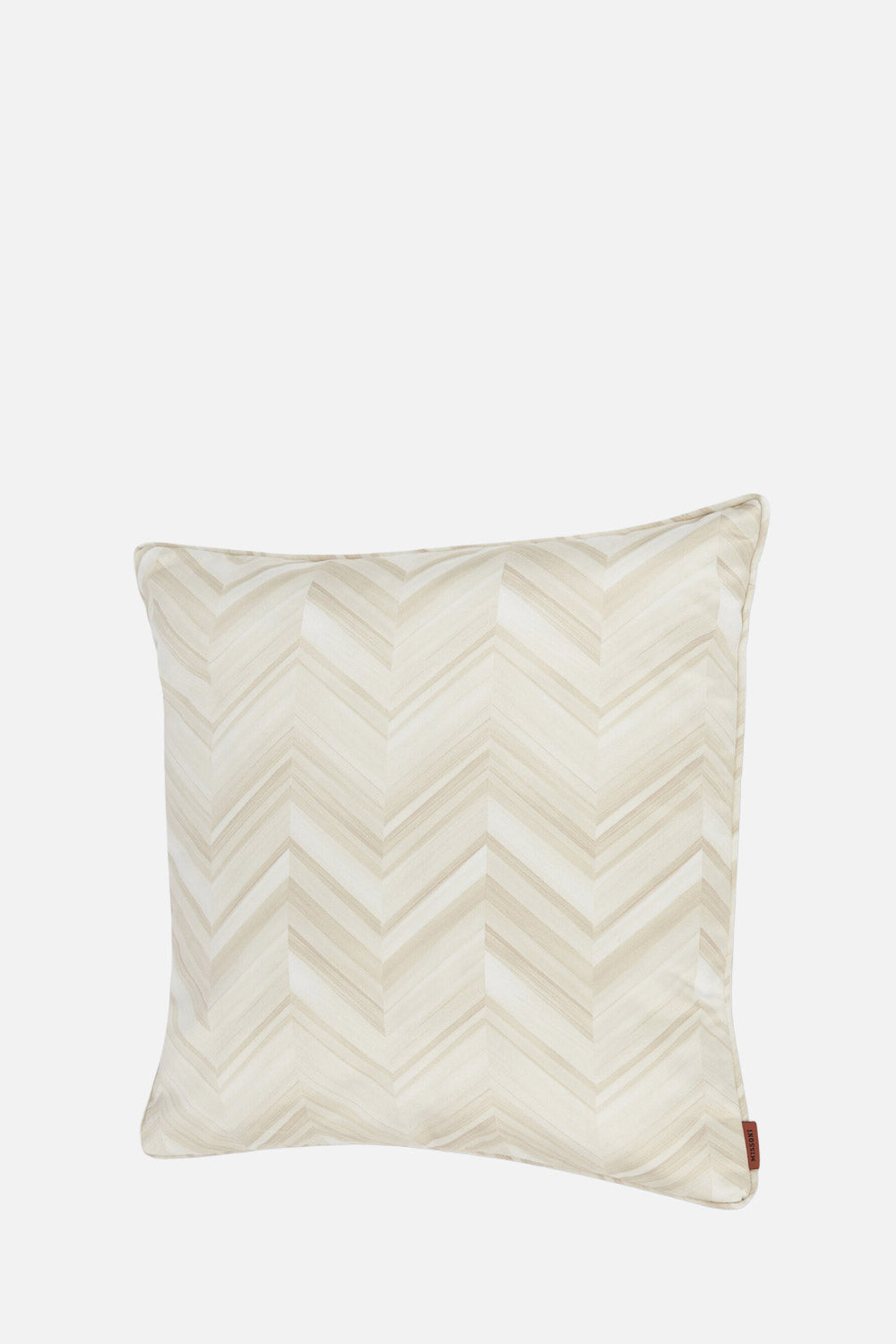 The 40x40 cm cushion features a captivating blurred chevron motif on smooth cotton sateen, showcasing the unmistakable Missoni flair. Its soft texture and refined design make it the ideal accent piece to bring warmth and elegance to any space.