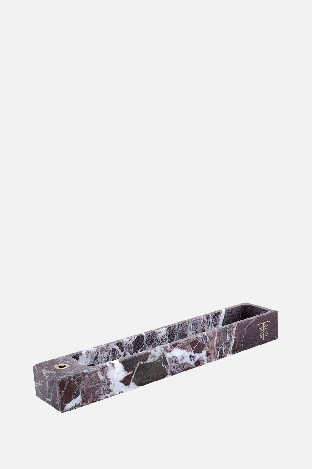 Hand-crafted from richly veined Rosso Levanto marble in deep burgundy, this minimalist incense holder elevates everyday rituals with natural elegance. Precision-carved from a single block of stone, it features a deep ash cavity and a brass hole to securely hold your incense stick. Each piece is one-of-a-kind, celebrating the living character of marble—subtle variations in tone and veining are part of its appeal.