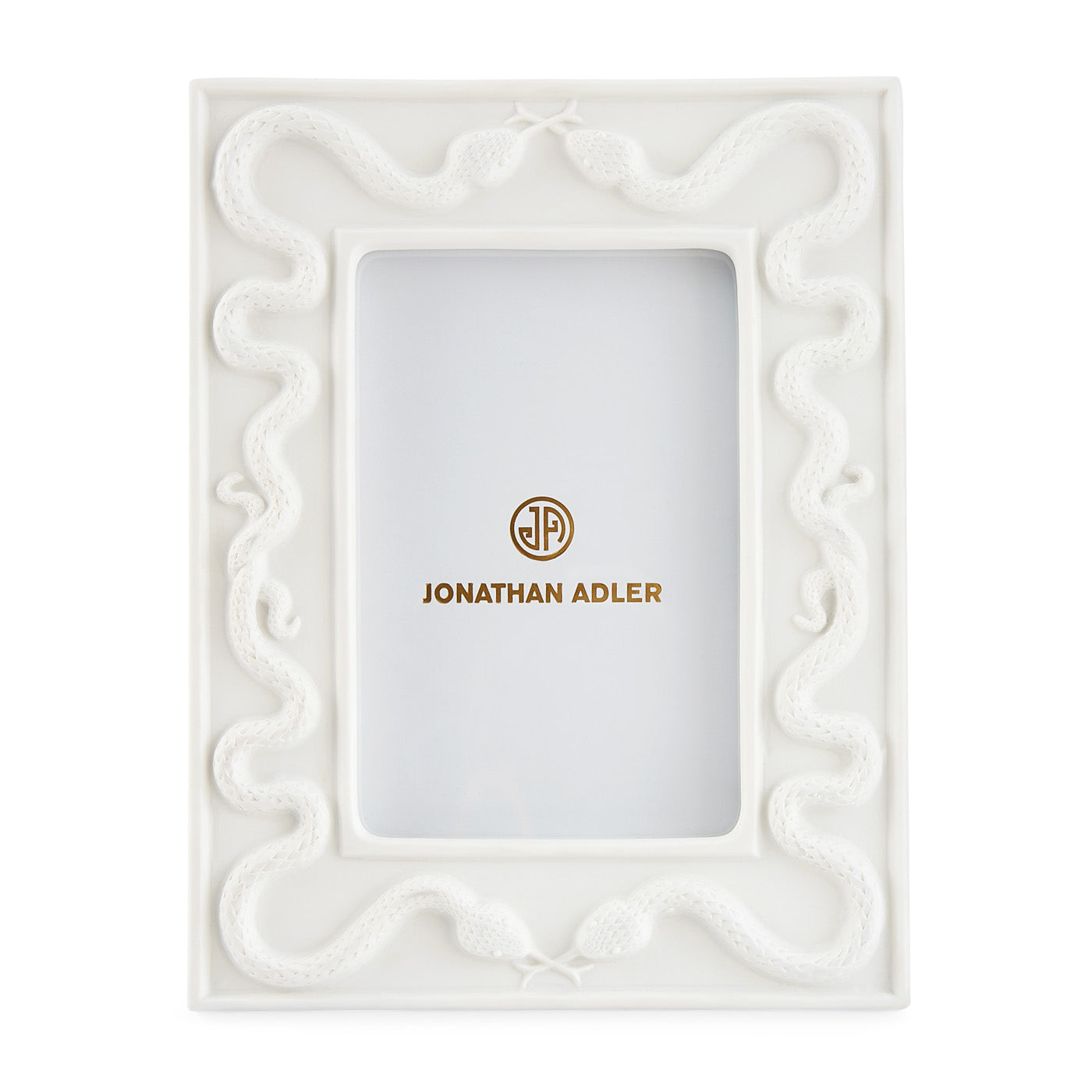 Display your cherished memories in style with the Eden 4x6 Frame, a luxurious porcelain frame featuring hand-carved slithering serpents for a bold, contemporary look. Perfect for your shelf, mantel, or tablescape, this frame adds a touch of elegance and playfulness to any space.