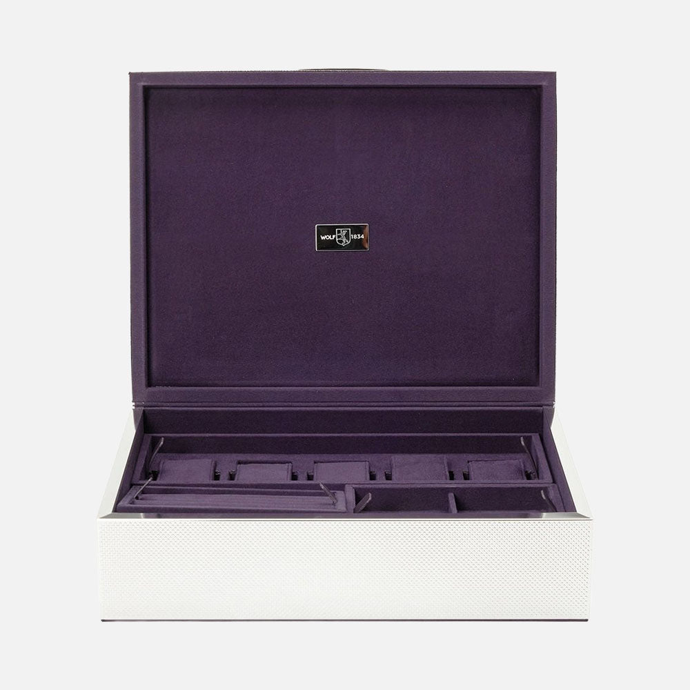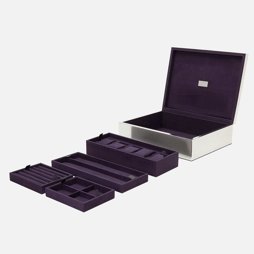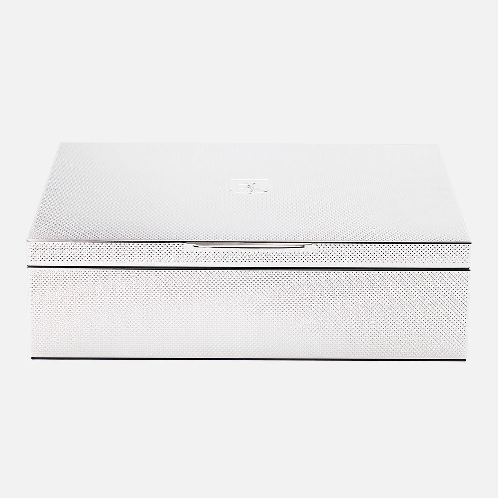 A masterpiece of timeless craftsmanship, the Silver Large Watch, Jewellery & Legacy Box pays tribute to Philipp Wolf I’s original silver creations from his 19th-century workshop in Hanau, Germany. Exquisitely silver-plated with an engine-turned exterior, this elegant box combines heritage and functionality in one refined statement piece.